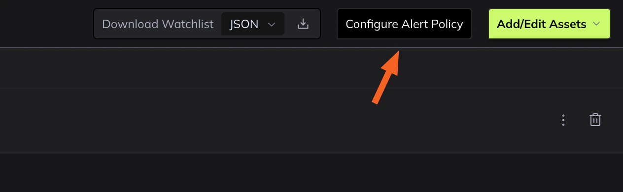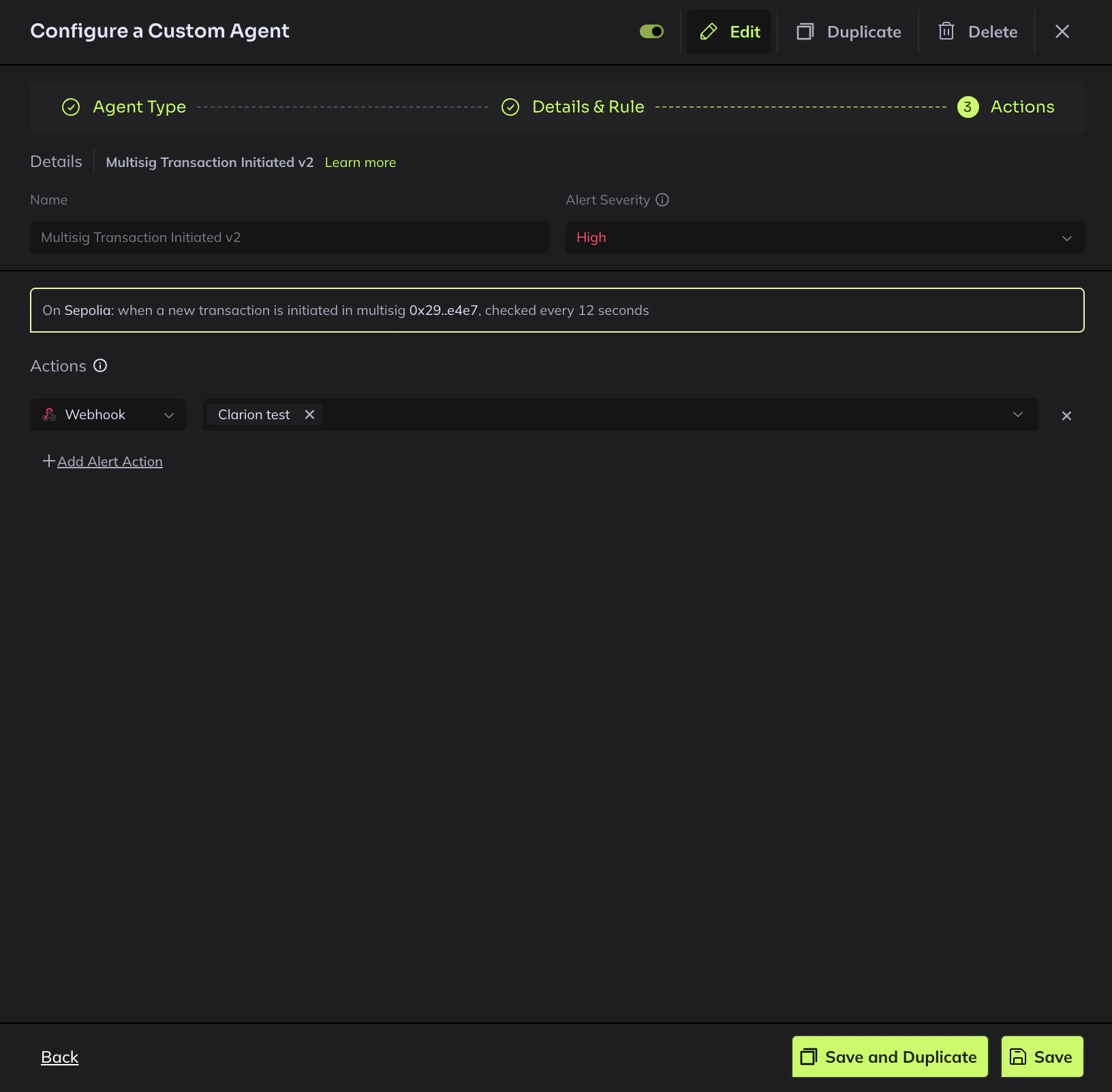 2. Open each watchlist and add the Clarion webhook to Actions under the Configure Alert Policy