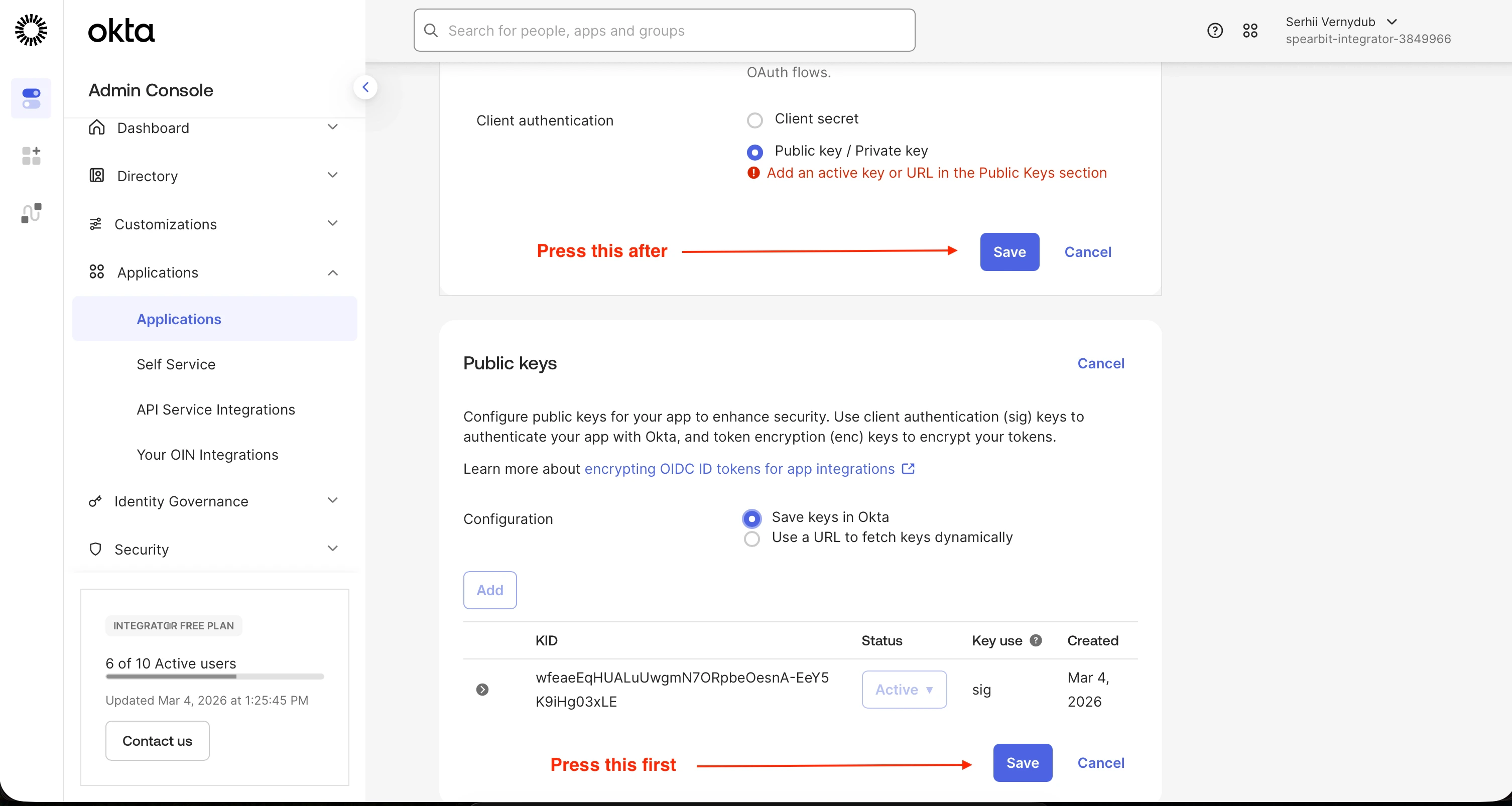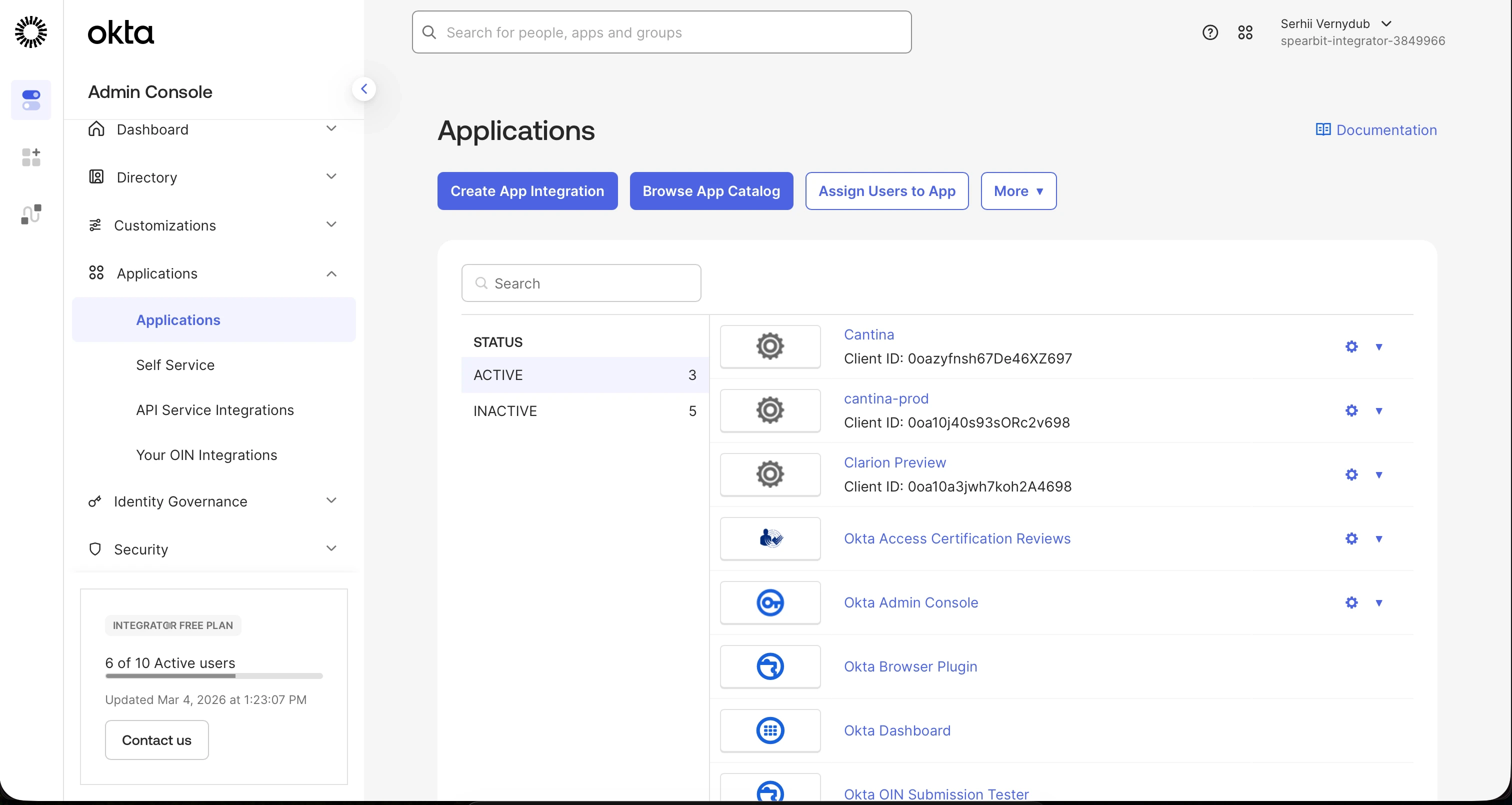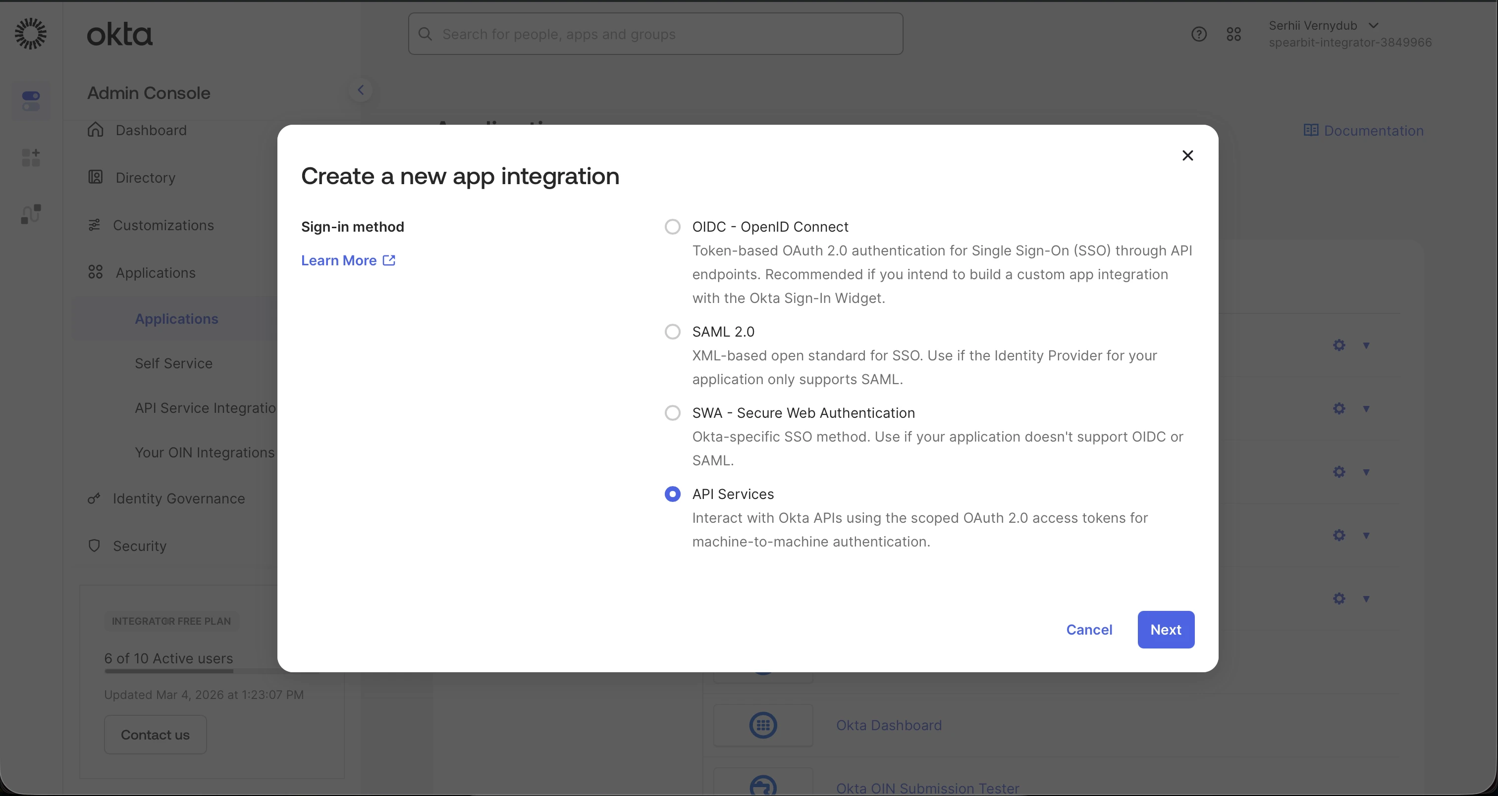 - In the Okta admin panel, go to Applications > Applications.