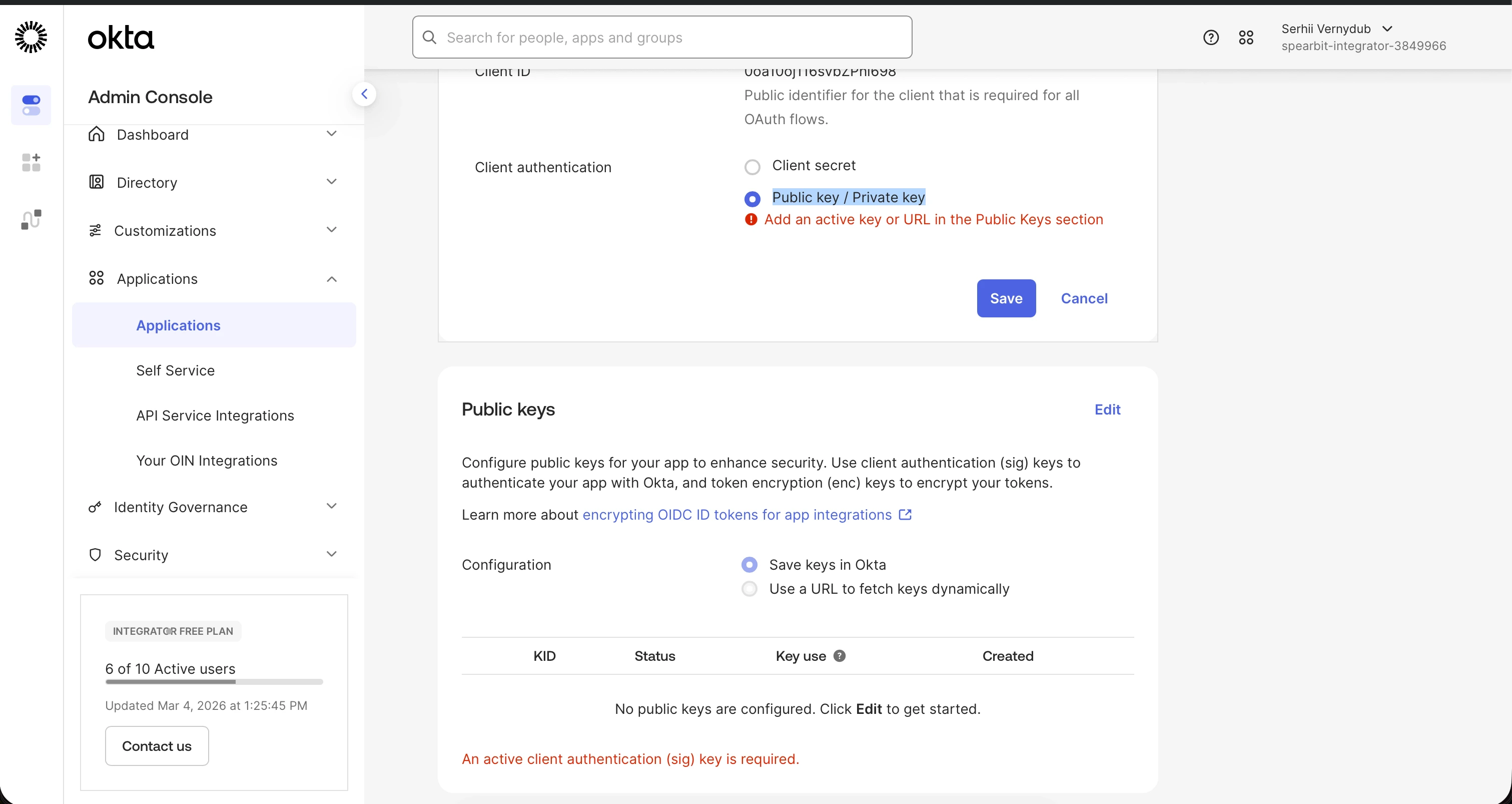 - Click Save — you will see an error and be scrolled to the Public Keys section. Click Edit there as well.