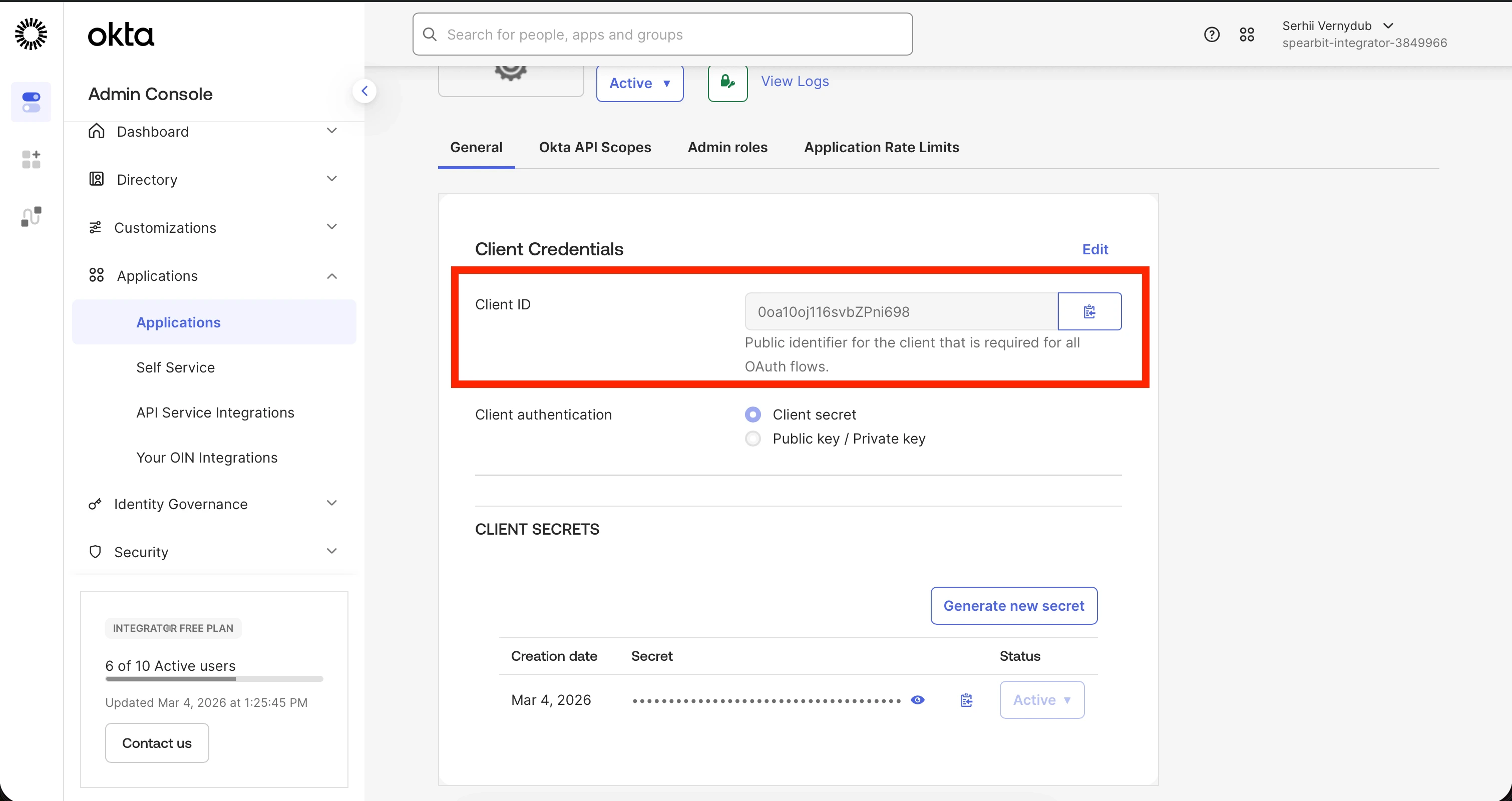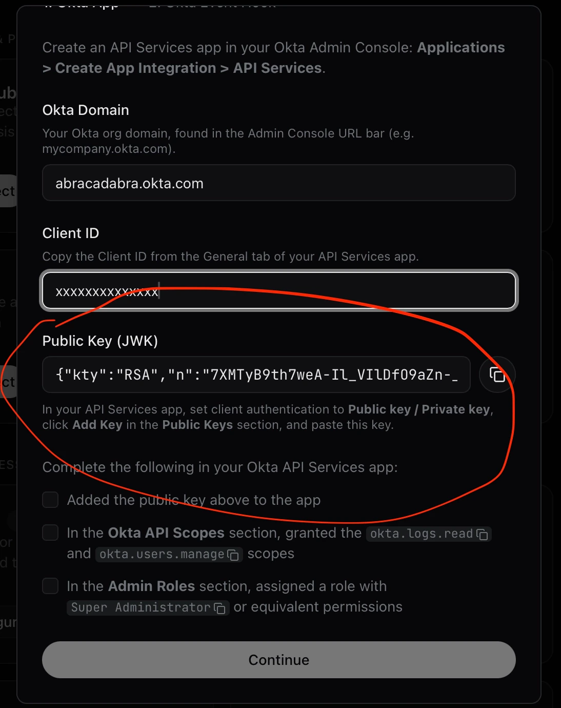 - Enter this Client ID into the Clarion integration wizard along with your Okta tenant URL.