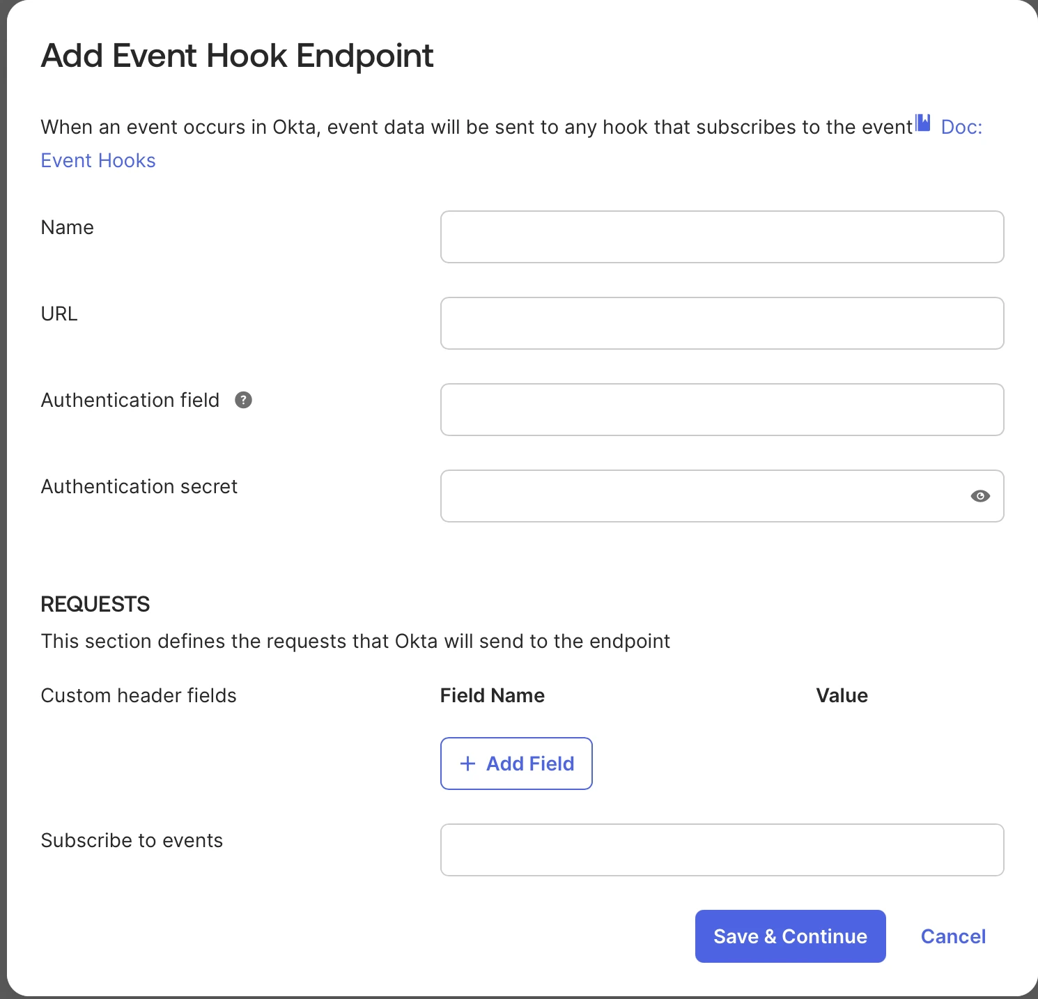 - Click Create Event Hook.